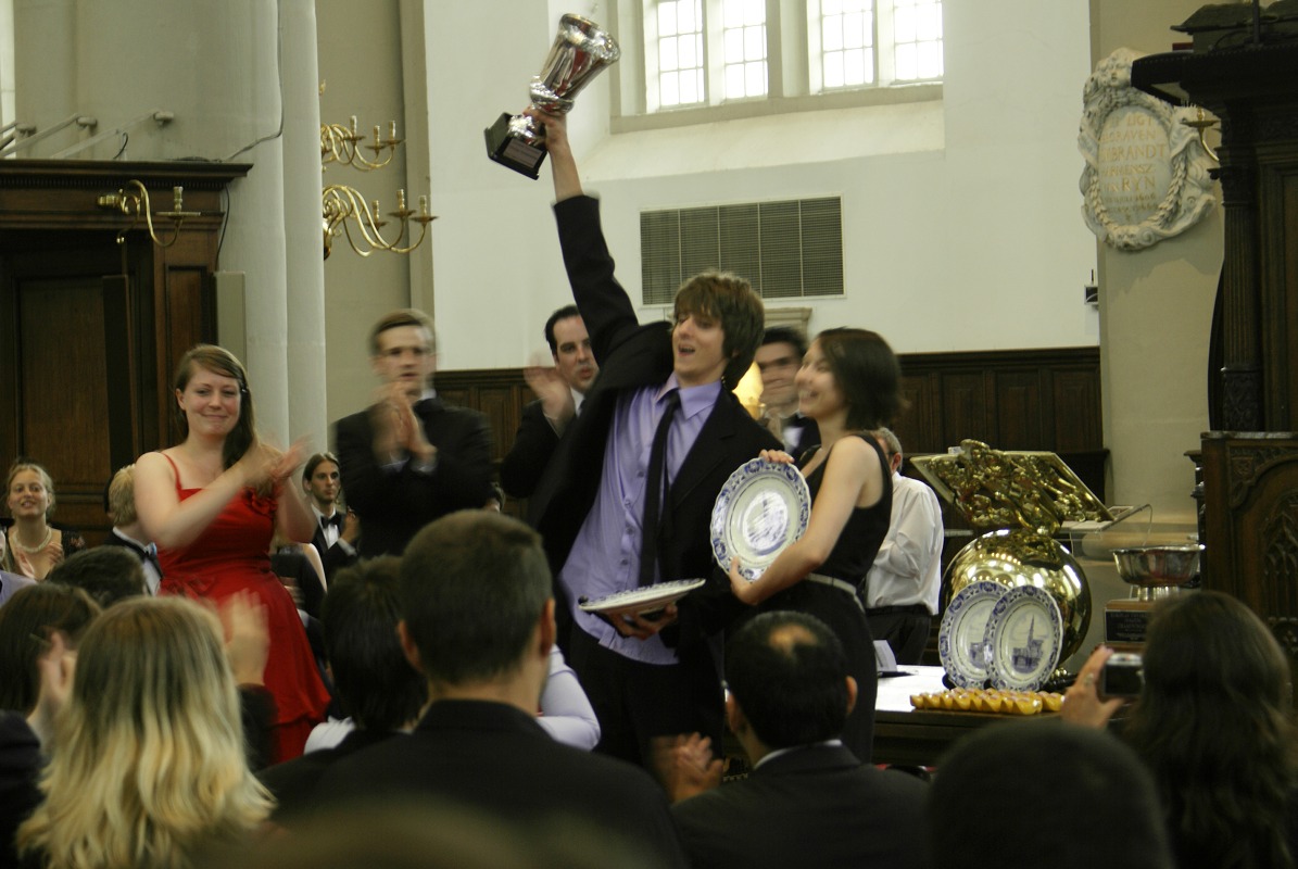 The knockout rounds took place in  several impressive locations, mostly churches. Exemplary for that was the final, which took place in the Westerkerk, a surprisingly richly-adorned building (for a classic protestant church). The two finals (ESL and Open) were great debates! In the ESL final, we heard Athens A (Manos Moschopoulos, Kimon Ioannides), Galatasaray A (Leyla Orak, Engin Arikan from Istanbul), Kalliope A (Steffy Roos du Maine, Floor de Koning from Groningen) and Ljubljana A (Maja Cimerman, Filip Muki Dobranic) debate the motion “THBT even in response to the most serious crimes a just penal system should have no consideration for society’s desire for retribution”, while the Open final saw Cambridge A (Harish Natarajan, Jack Watson), Kings Inn A (Eoghan Casey, Patrick Rooney from Dublin), Oxford A (Ben Woolgar, Thomas Hosking) and Oxford B (Hugh Burns, Neil Dewar) with the motion “THBT after a humanitarian intervention has halted human rights abuses the occupation forces should leave if the population clearly establishes this as their wish.”