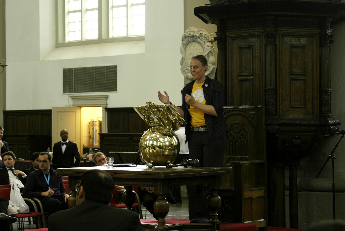 Anne Valkering, Convenor of Amsterdam EUDC 2010, addresses the participants and audience after the finals thank the many people who made the tournament such a great success.