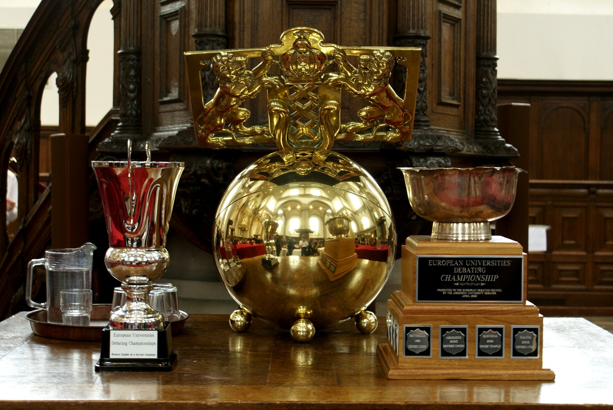 The awards for the best ESL team (left) and the best overall team at EUDC, presented before the Finals. Curiously, the cup for the overall winners had been missing for years before it was recovered in time for Euros Amsterdam.